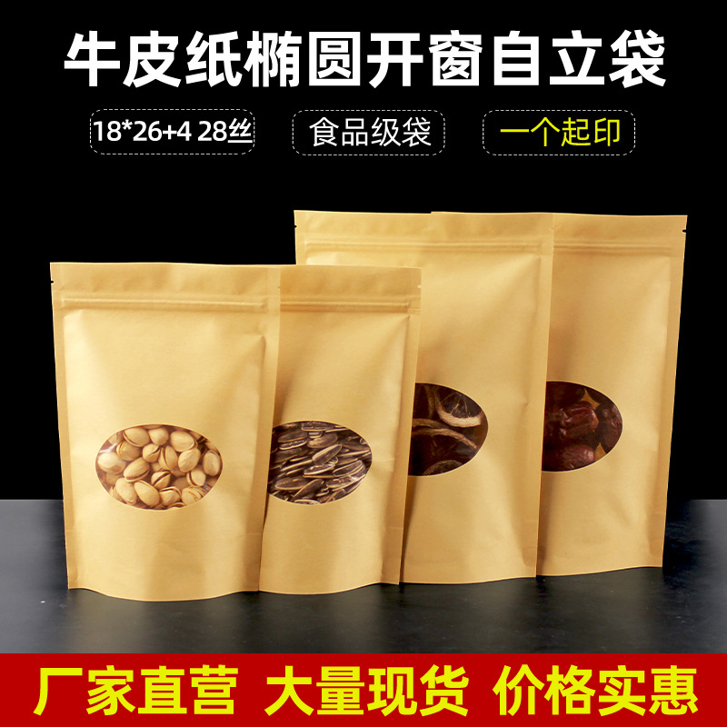 18*26 + 4円形窓開けクラフト紙自立自封袋食品包装袋茶乾燥果封口包装袋