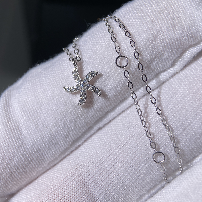 新品S925純銀メッキプラチナ星ネックレス小海星シンプル気質小衆軽豪華高級感鎖骨チェーン