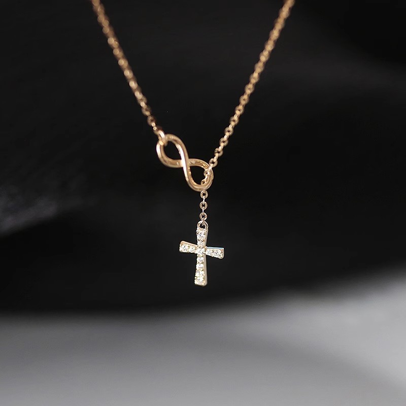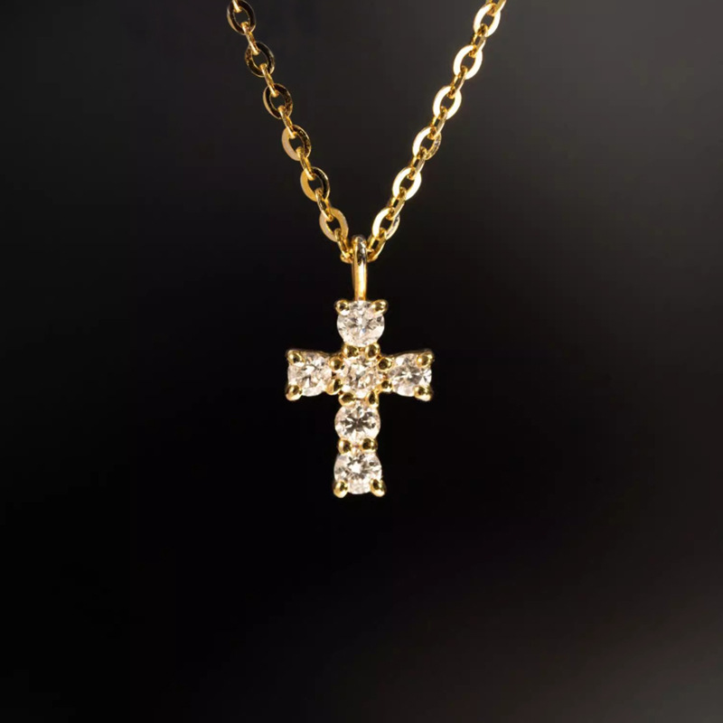 オリジナルデザインS925純銀十字架ネックレスミニ満ドリル軽贅沢小衆高級感百合鎖骨鎖