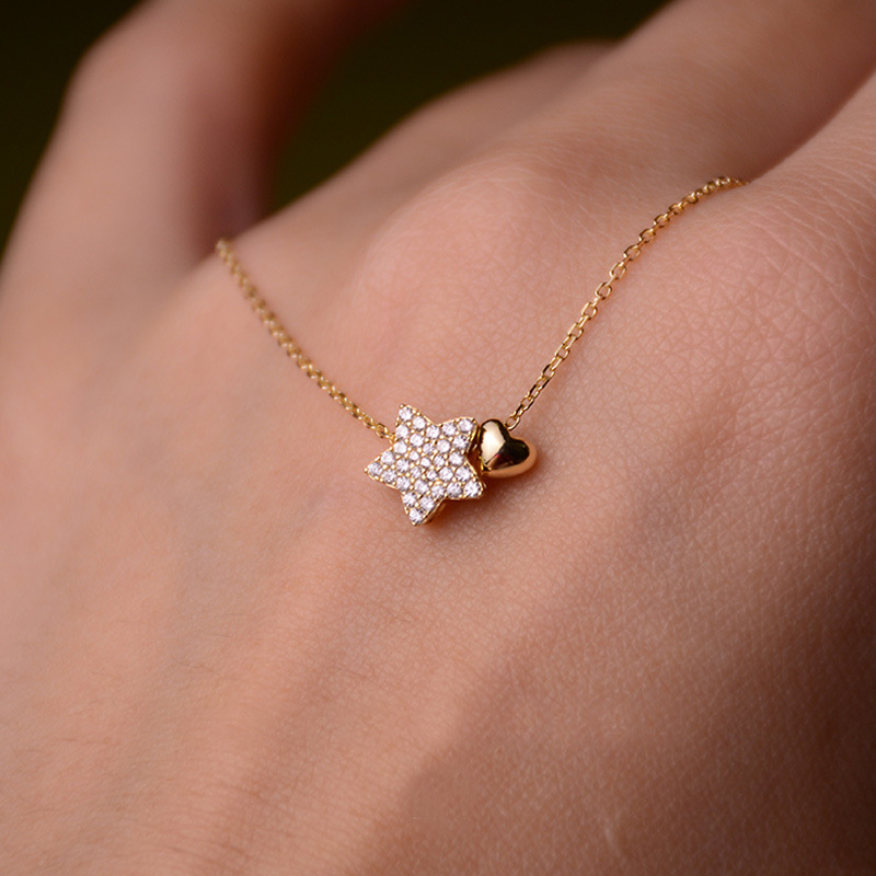 日系軽豪華s925純銀メッキk金満ドリル星愛ネックレス小衆気質高級感鎖骨鎖女
