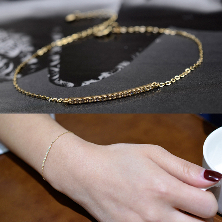 新品925純銀18K金メッキブレスレット、ラインストーンとジルコンを散りばめた超極細で輝く絶妙なシンプルなデザインのハンドジュエリー