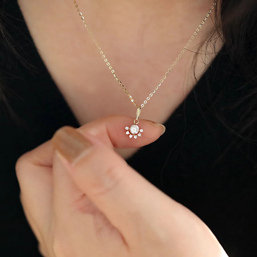 美しい日の出を叩いて輝いたS925純銀メッキ18k金ネックレスにジルコニウムドリルをはめ込んだ贅沢なins洗練された雰囲気感ペンダント