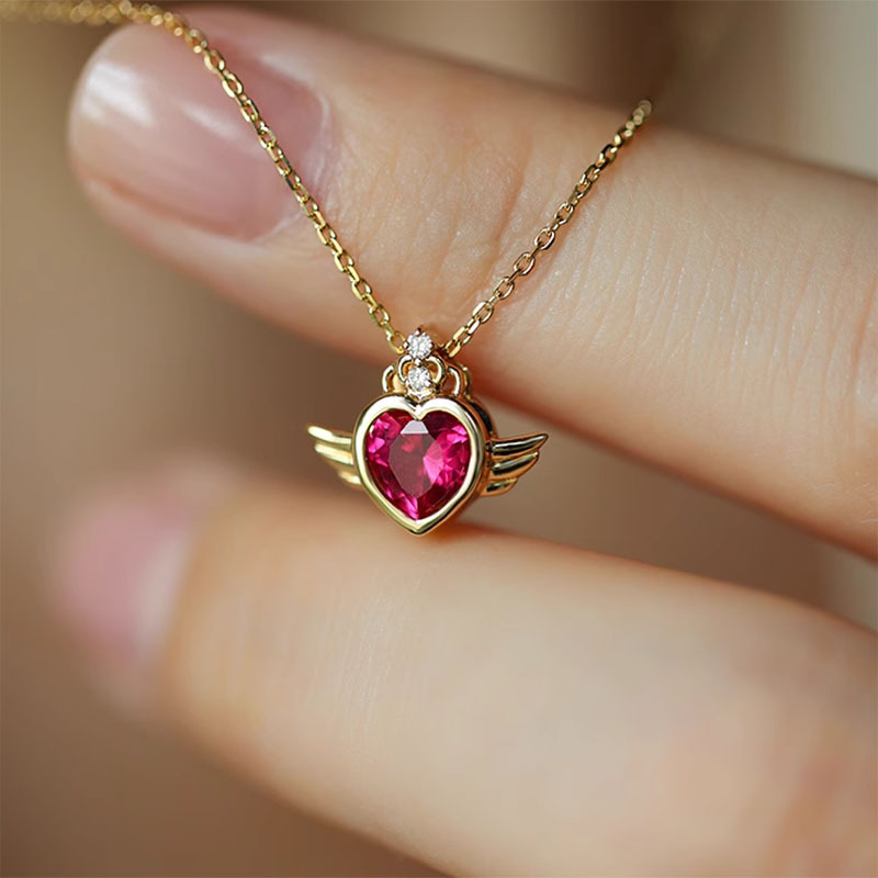 ライブホットセール925スターリングシルバーメッキ18Kゴールドネックレスラブレッドコランダム小さなペンダントデザイン絶妙な鎖骨チェーン