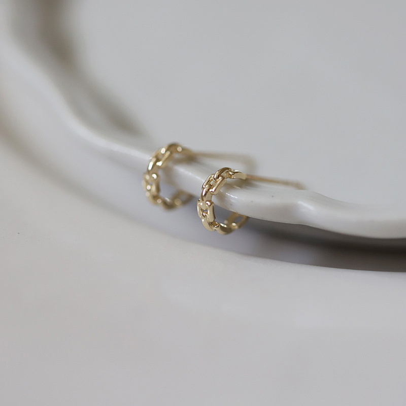 S925純銀メッキ14k金ピアス角チェーン耳輪感耳骨釘高級感ins風気質イヤリング女