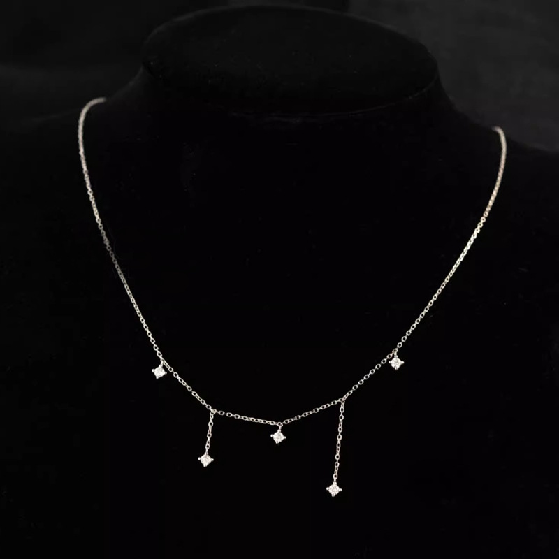 S925純銀メッキ14k金ネックレス女流蘇水滴角ドリル気質鎖骨鎖ネット赤アクセサリー