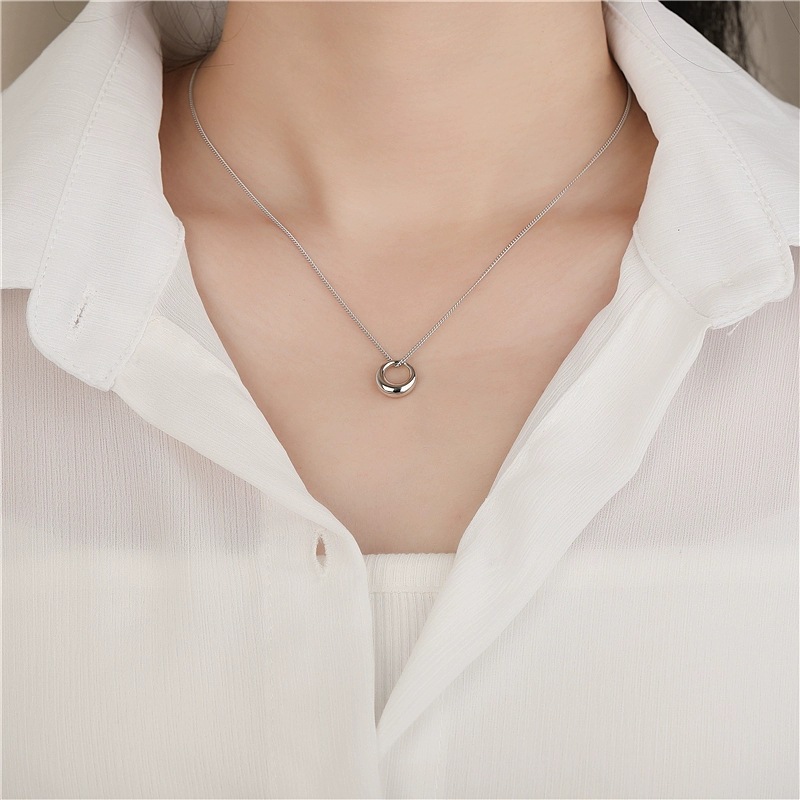 小清新s925純銀メッキプラチナネックレス小円シンプルins風軽豪華小衆鎖骨鎖女ペンダント