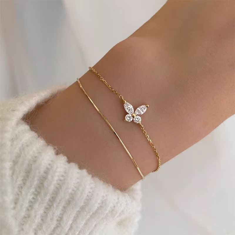 S925純銀メッキ18k金小蝶にダイヤモンドのブレスレットを入れた女性の小さなデザイン感がシンプルで贅沢な高級感のある手飾り
