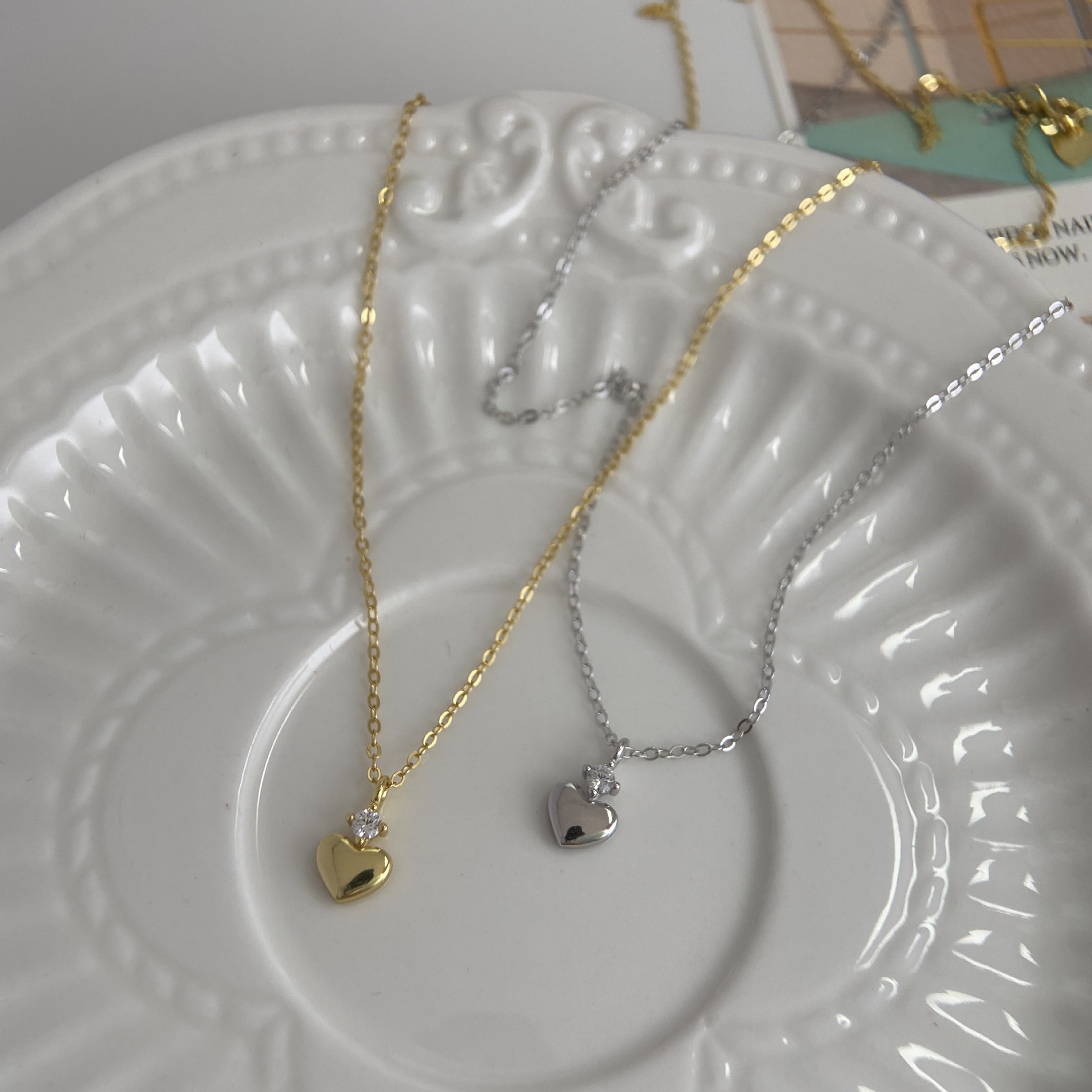 オリジナルデザインS925純銀愛ネックレス光沢面ミニダイヤモンド桃心小衆高級感軽豪華鎖骨鎖