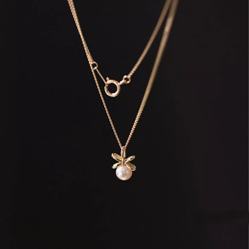 ネット赤生放送強推金s925純銀ネックレス一粒真珠重ね感気質シンプル女性ペンダント鎖骨鎖