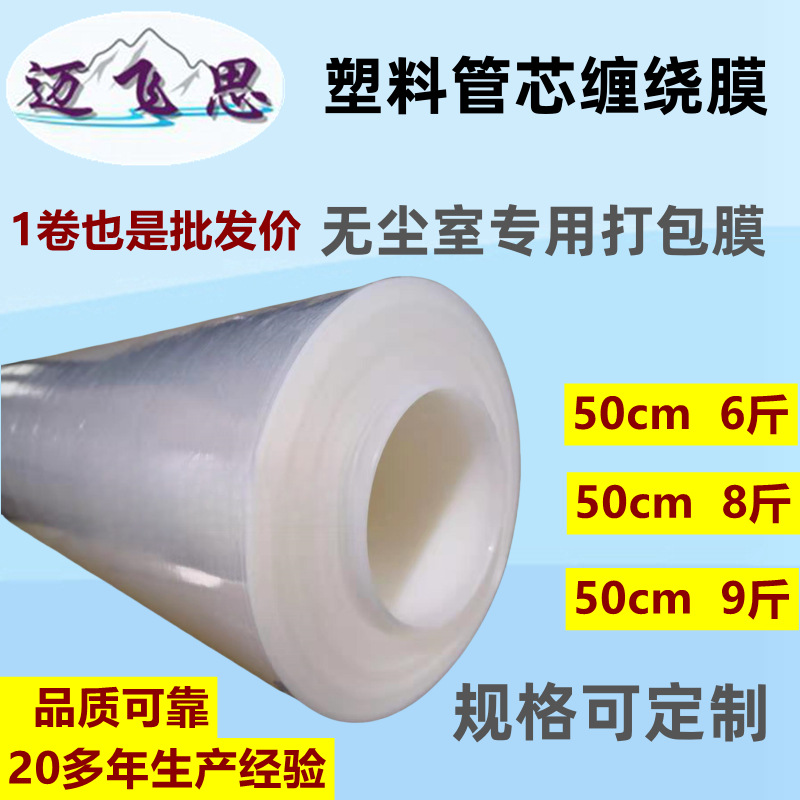 Peプラスチック管芯巻き膜メーカー卸売り透明で屑が落ちないpe延伸膜クリーンルーム専用包装膜
