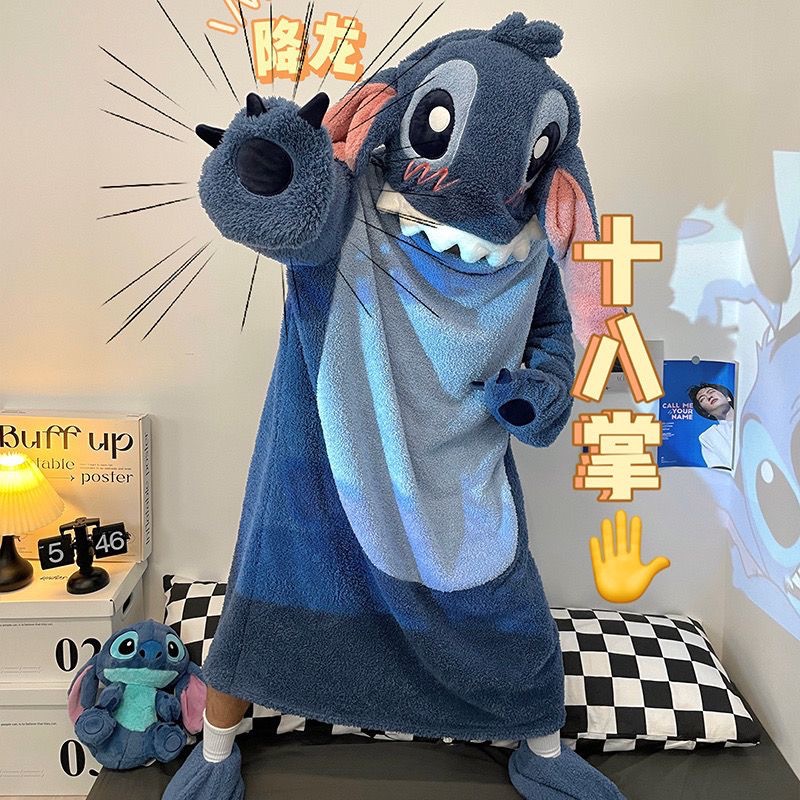 スティッチのパジャマの女性は冬にベルベットを厚くして、ゆったりしていて、冬に帽子のパジャマの家の服が外出できるのも不思議ではありません