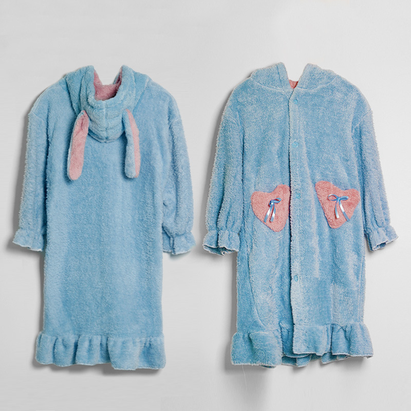 特価!! かわいいウサギのサンゴのベルベットのパジャマの女性の冬の美楽ティは家の服のパジャマのスカートを厚くします。