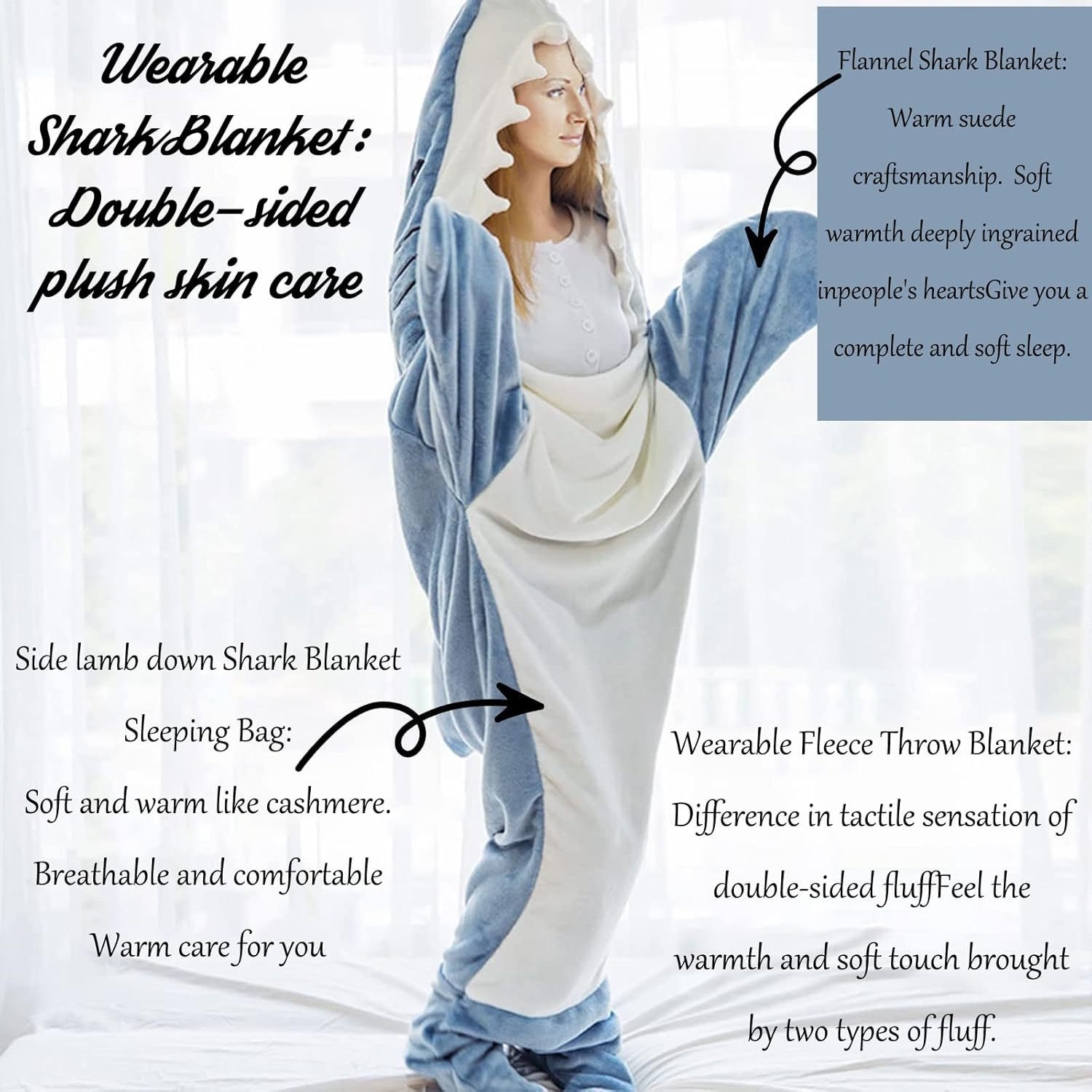 かわいい大人サメ連体サメ毛布フード付き毛布超柔らかいフランネル寝袋蹴り防止