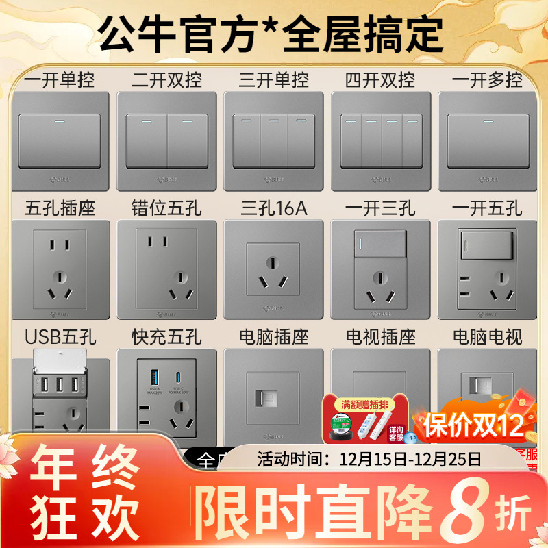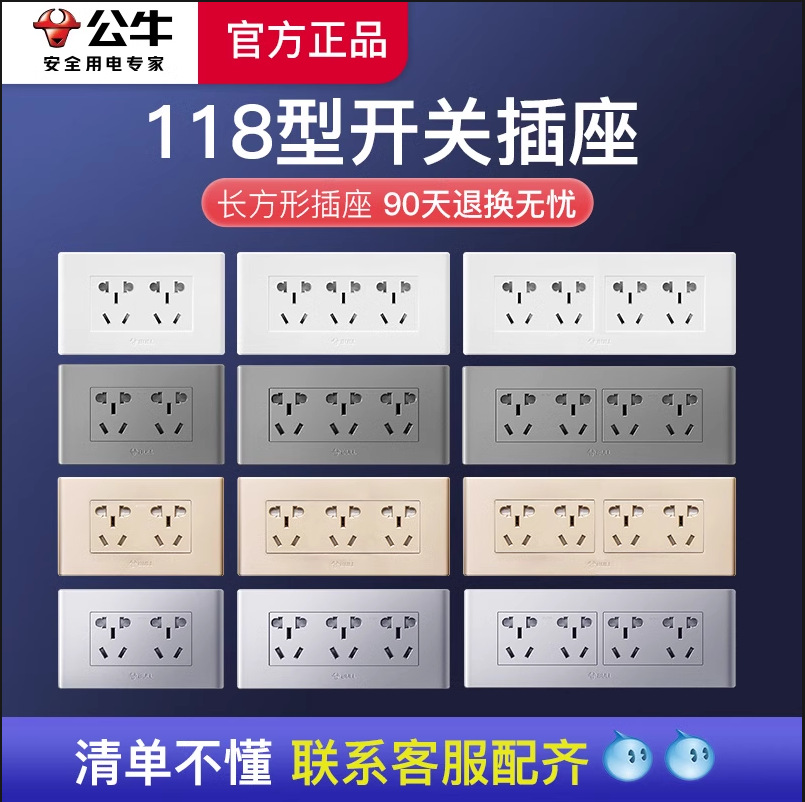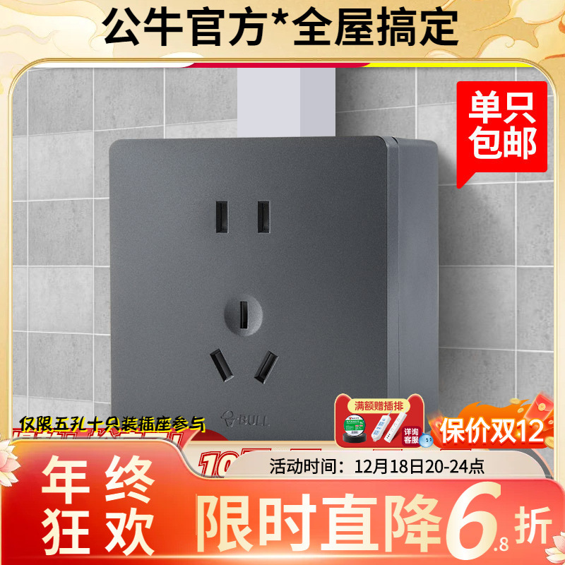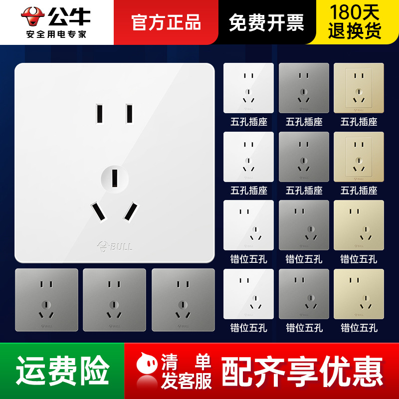 雄牛ソケットパネル卸売り86型家庭用家具g12二三五穴ソケット白金灰色雄牛純正品