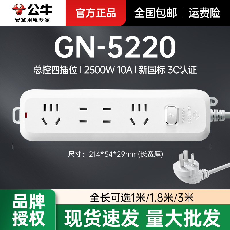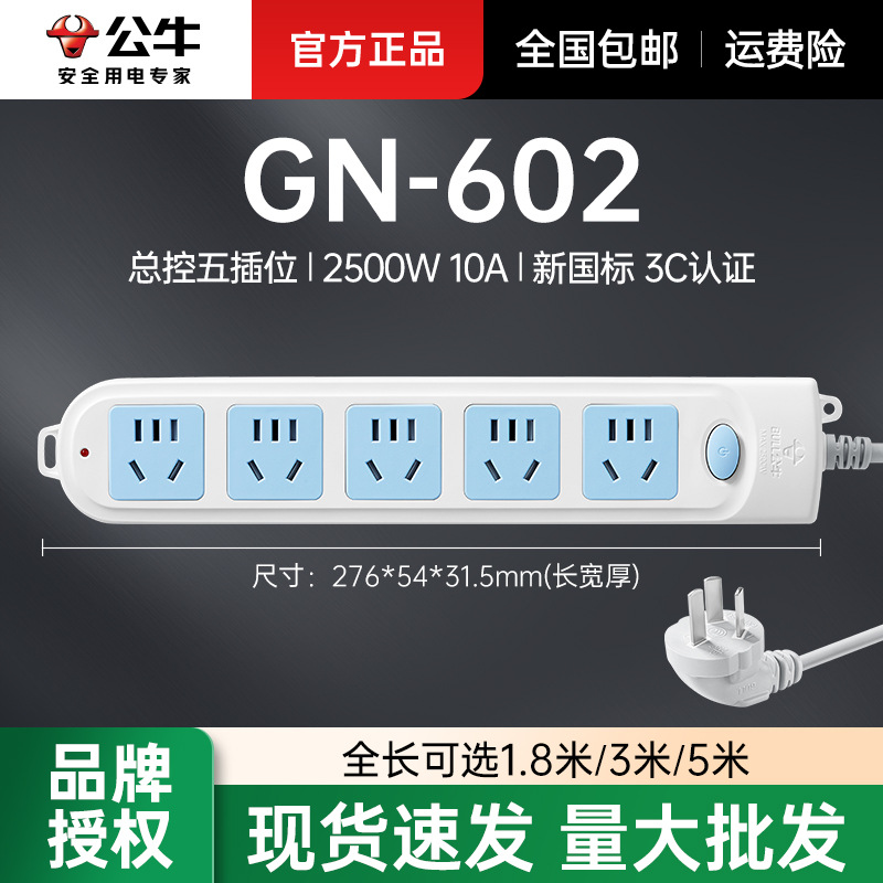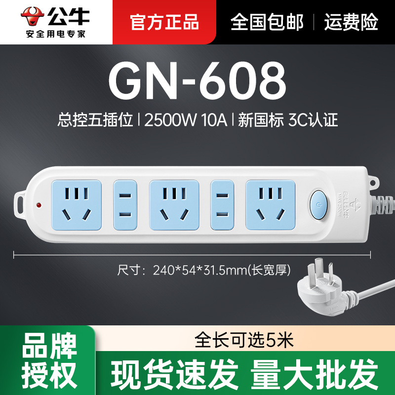 雄牛コンセント新製品GN-B5080総制御八位プラグ5m電源延長線家庭用ボード大量卸売り