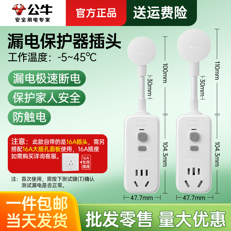 雄牛漏保コンセント給湯器漏電保護器16安大電力16aスイッチ付きケーブル漏れ保護プラグ