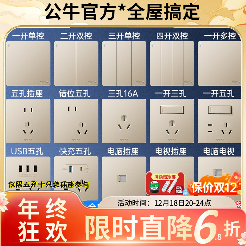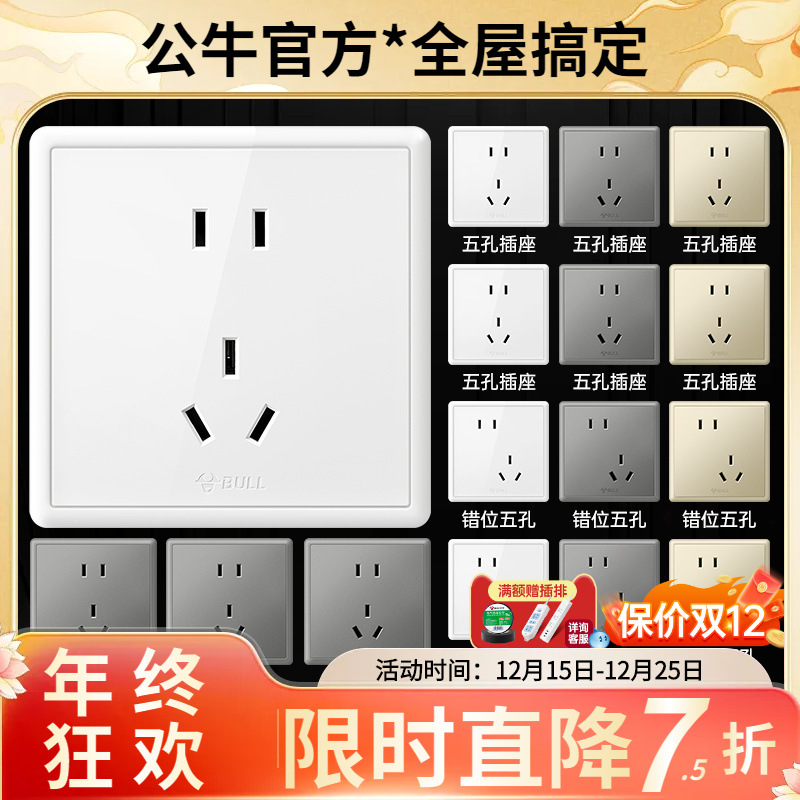 雄牛壁暗装スイッチソケット四穴86型パネル卸売り家庭用usb五穴ソケットg 12星金