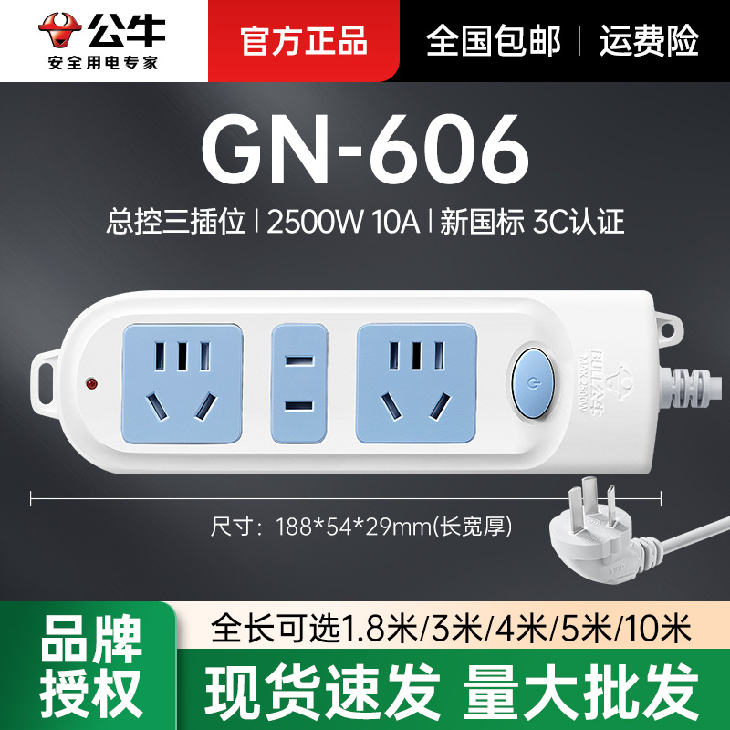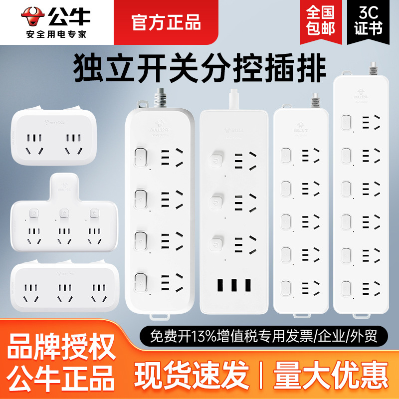 Bullの新製品、新国家標準プラグインストリップ、マルチソケットプラグインストリップ、USBソケット、収納可能なドラッグストリップバッチ