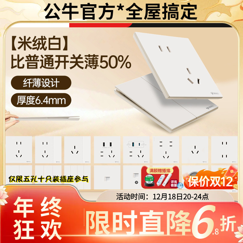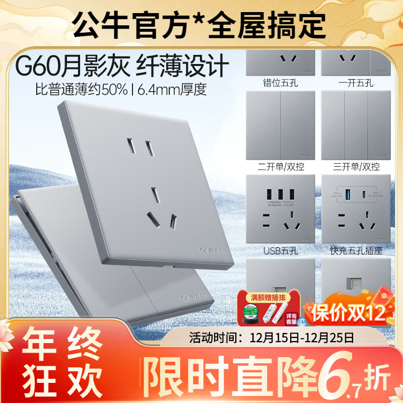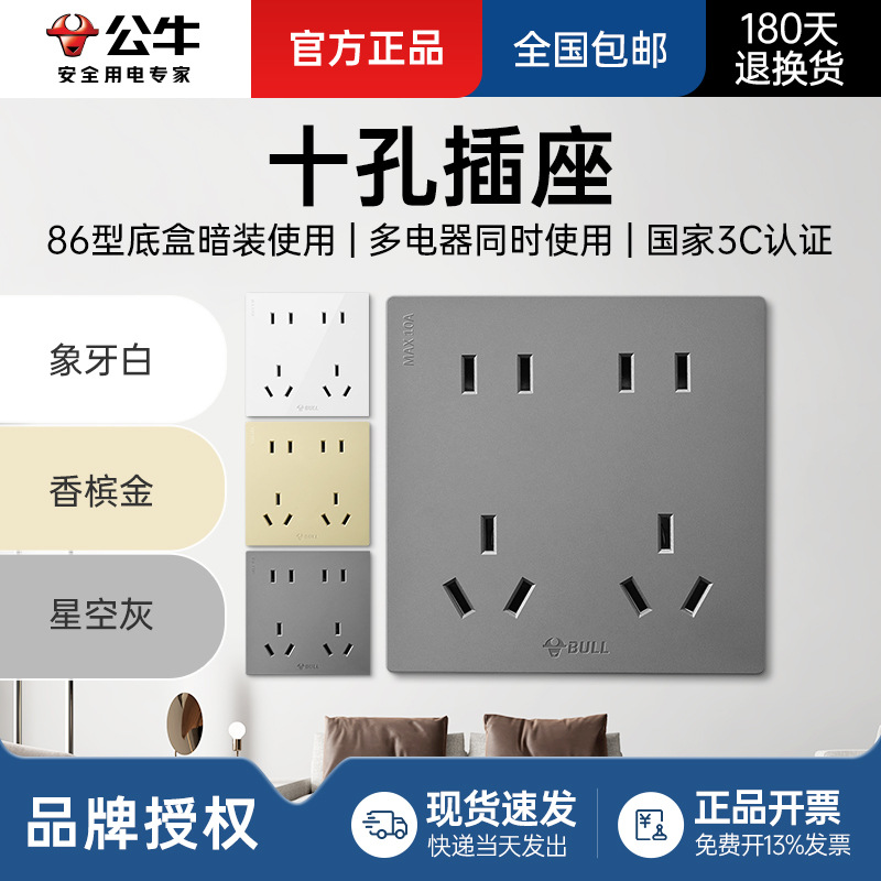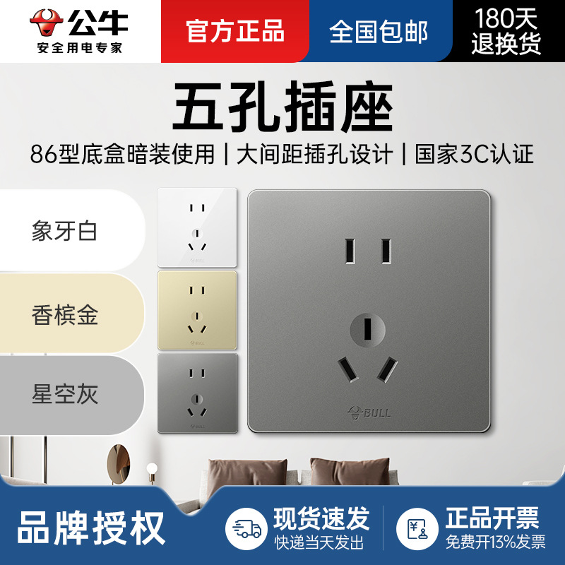雄牛五穴コンセントg12フレームなし二三コンセントパネル壁コンセント卸売り86型暗装正規品