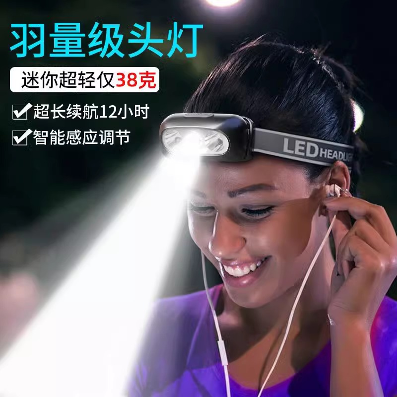 LED ヘッドライト超高輝度充電式ヘッドマウント強力な光センサー超高輝度懐中電灯小型ポータブル夜釣りライト