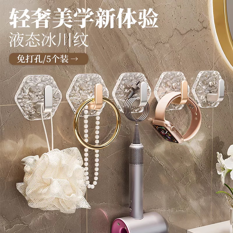 ウォーターリップルフック、軽くて豪華、パンチフリー、強力な粘着壁掛けドア、跡のない寮の粘着フック