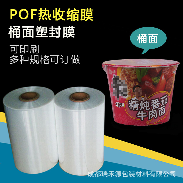 すぐに発送できる既製のロールのpof熱収縮フィルム、熱収縮袋、バケツ、麺、酸辣湯麺、インスタント包装プラスチックシールフィルム