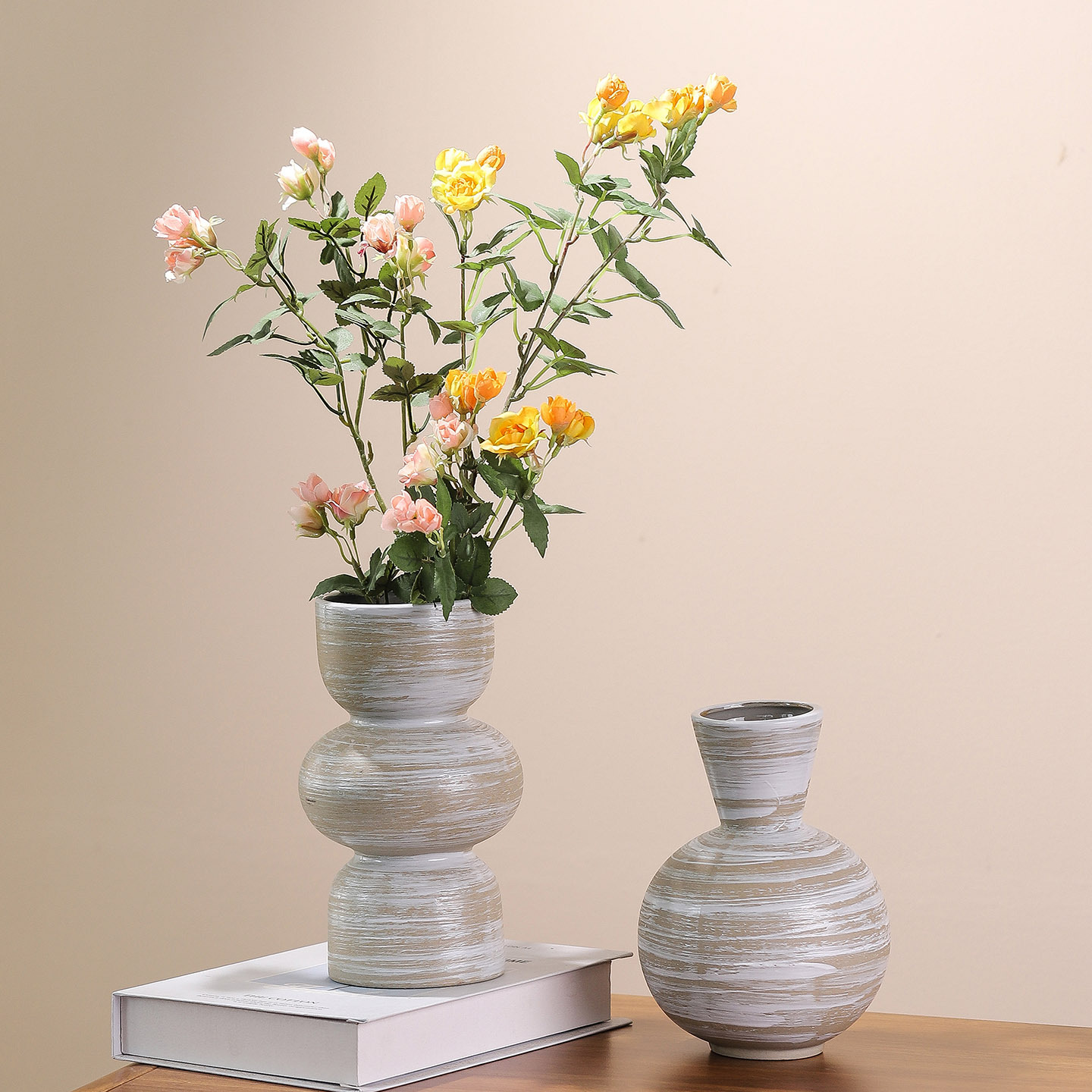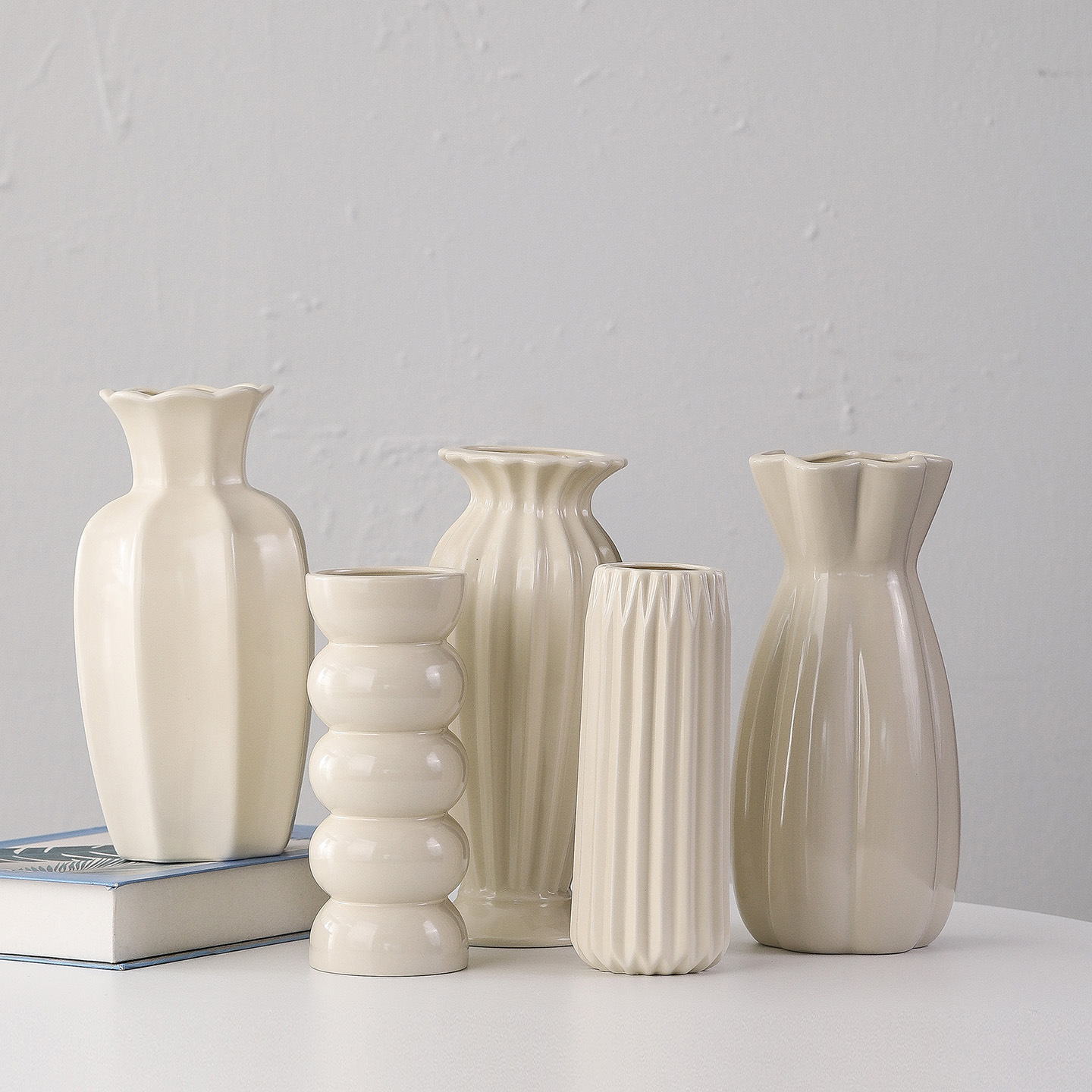 北欧陶磁器素焼き白い芸術花瓶創意シンプルで豪華な花器ホームオフィス装飾工芸品