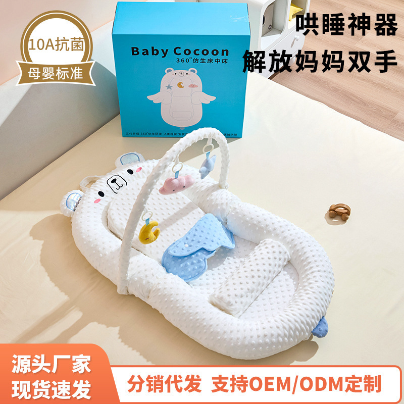 赤ちゃんの漫画のベッドの中のベッドのセットのバイオニクスのベッドの移動可能なベビーベッドの赤ちゃんの圧力防止の携帯用ベッドの白玉の猫