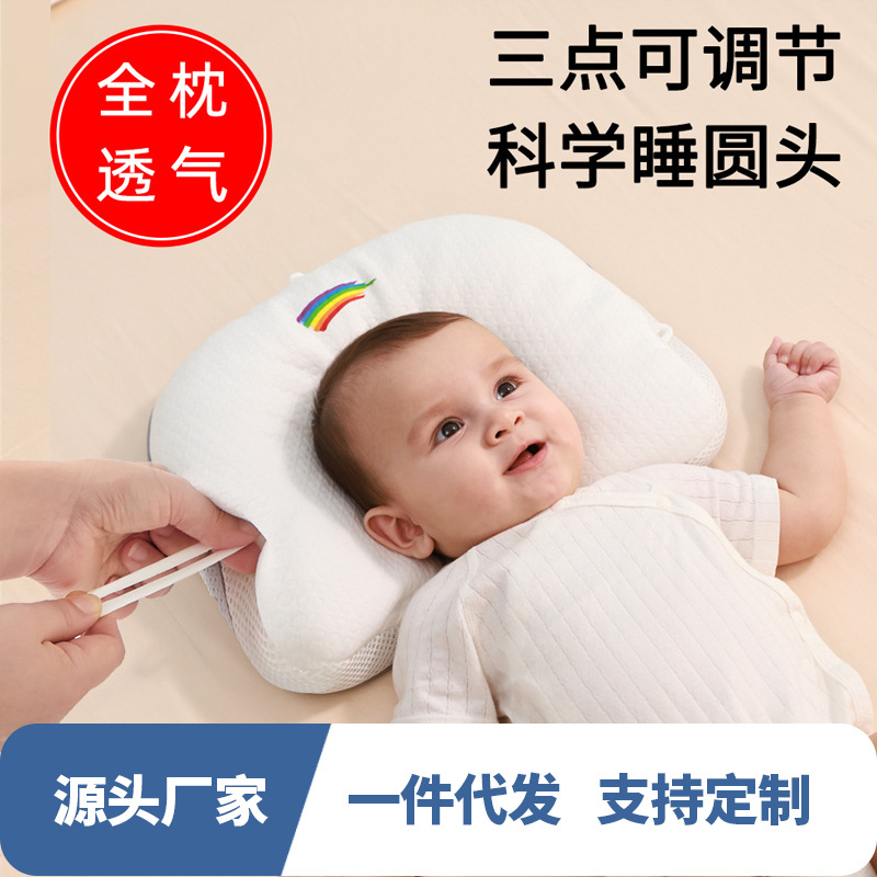 赤ちゃんの定型枕0-12ヶ月の1歳の赤ちゃんの新生児補助偏り防止ロープの通気性は三面で調整できます。
