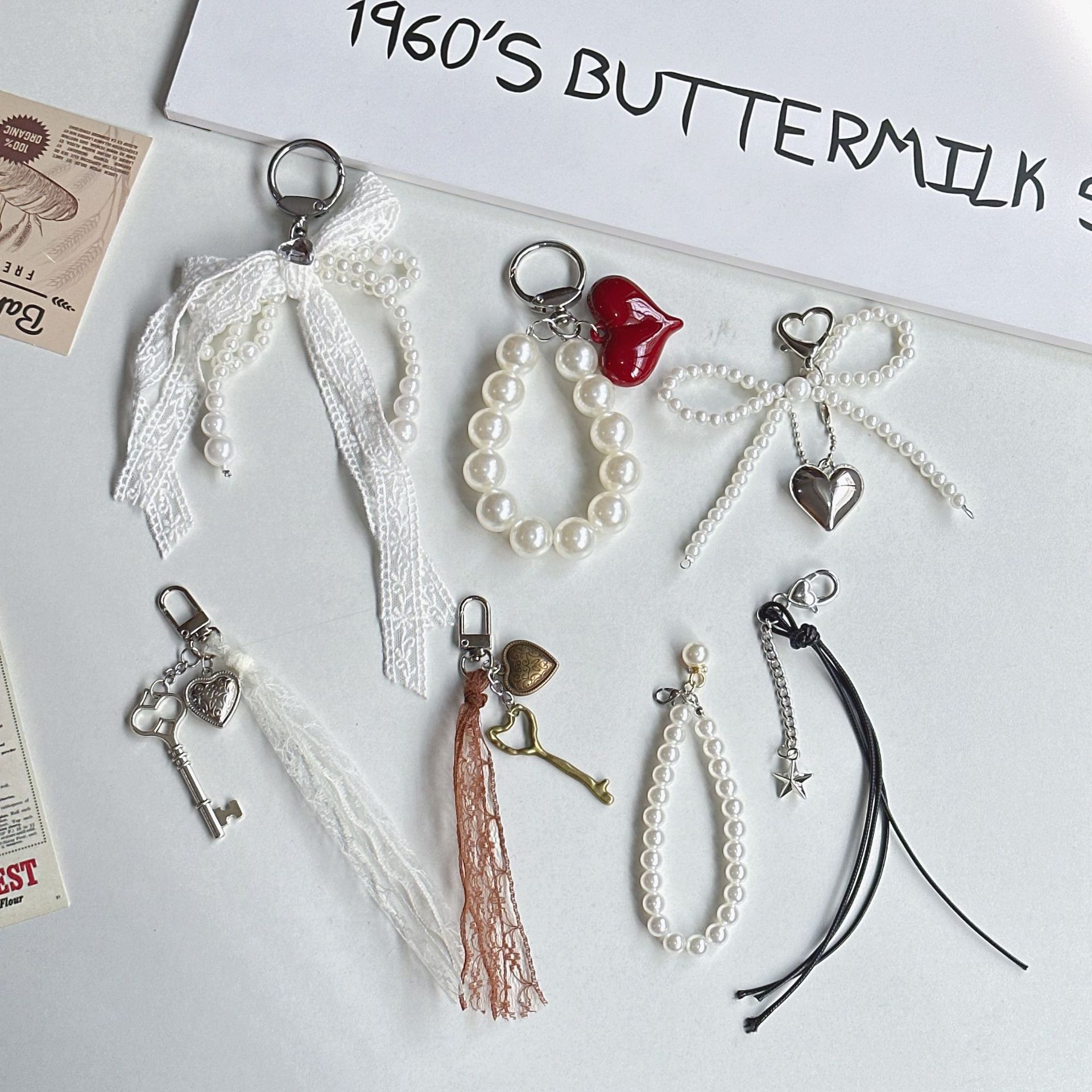 新しい韓国キーホルダー miu バッグペンダントジュエリーリボンペンダントパールアクセサリーシンプルなペンダントアクセサリー女性のための