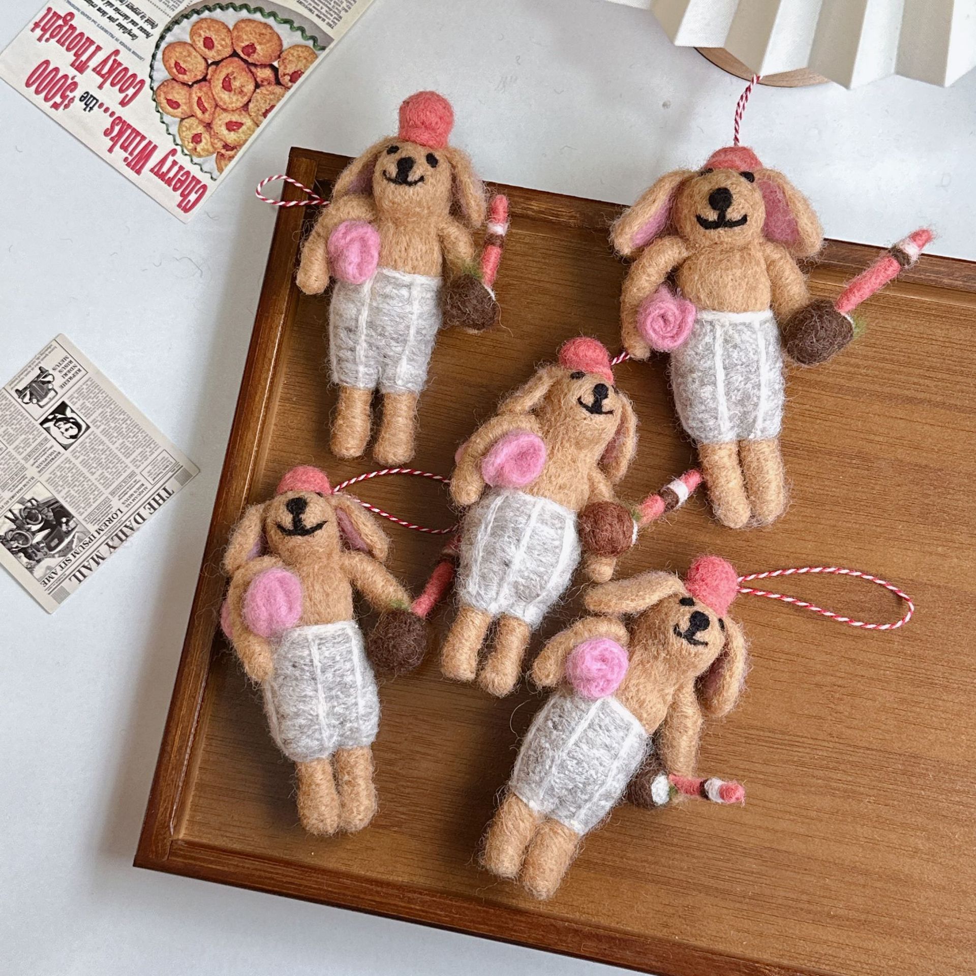 新しいパーソナライズされた子犬ウールフェルトペンダント完成品かわいいキーホルダーミュウスタイルバッグペンダントジュエリーレディースアクセサリーギフト