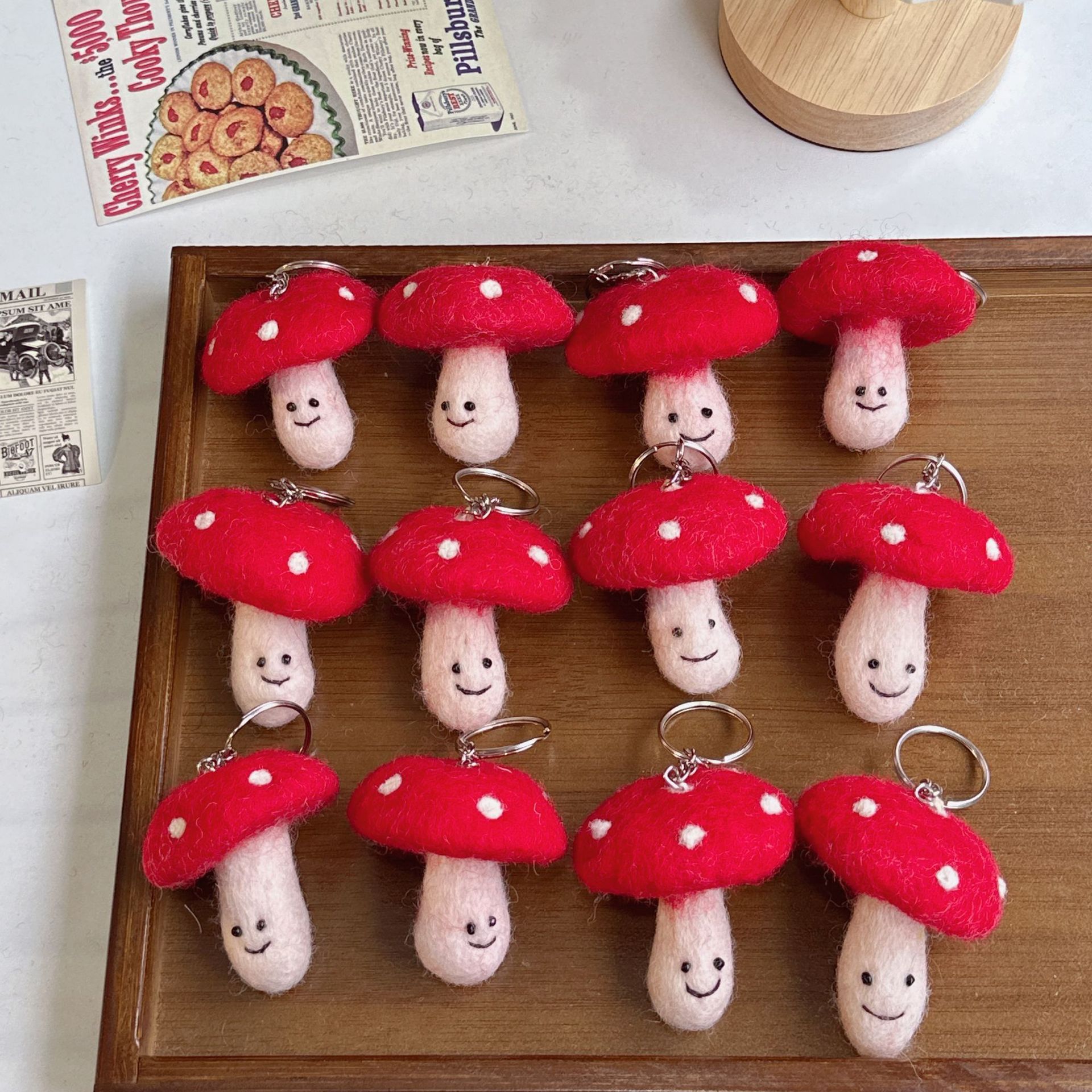 新しい純粋な手作りウールフェルトキノコペンダント miu バッグキーホルダーアクセサリー ins スタイルハンドバッグ女性のペンダント