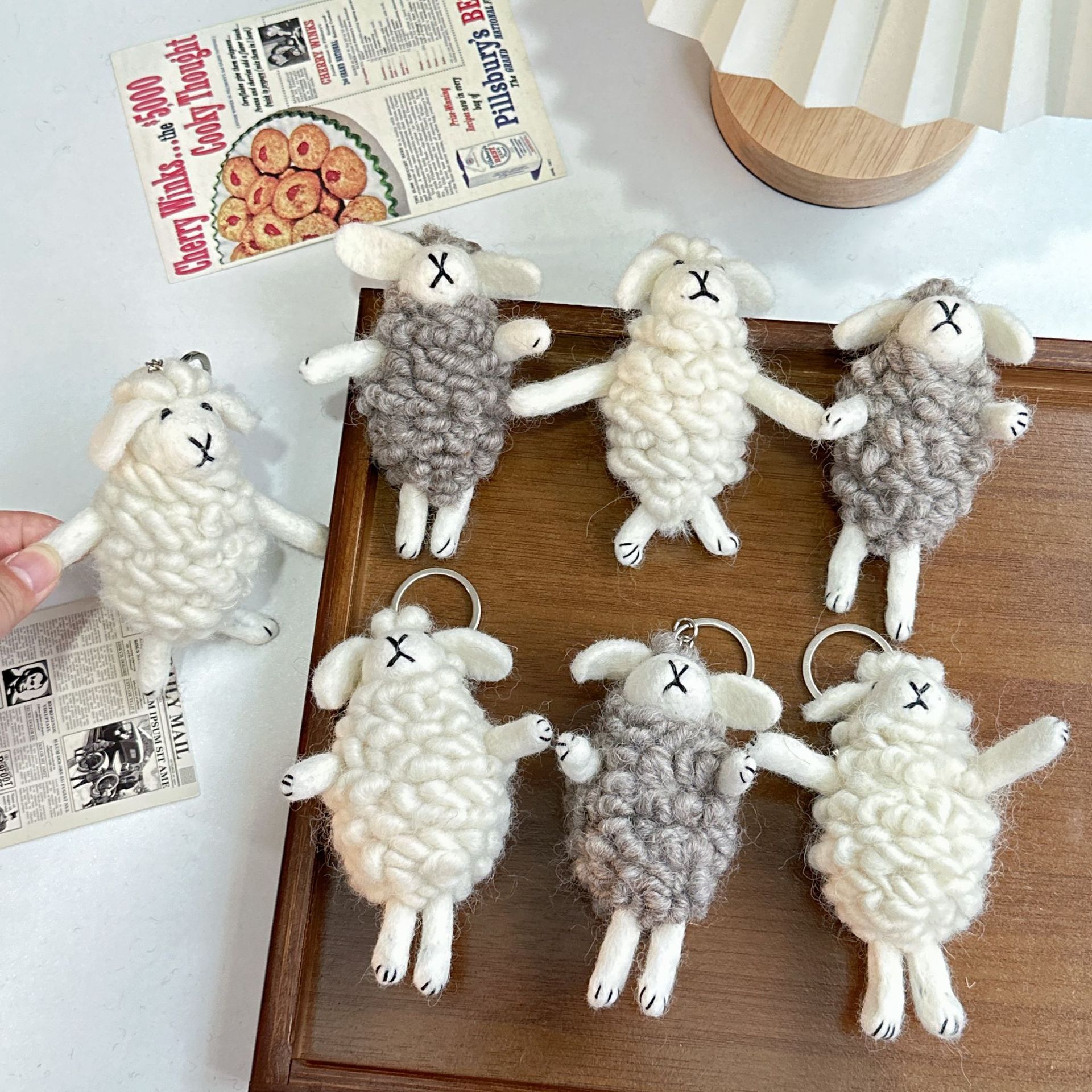 新しいグレーと白のラムウールフェルトペンダント完成品かわいいキーホルダーミュウスタイルバッグペンダントジュエリー女性のバックパックアクセサリー