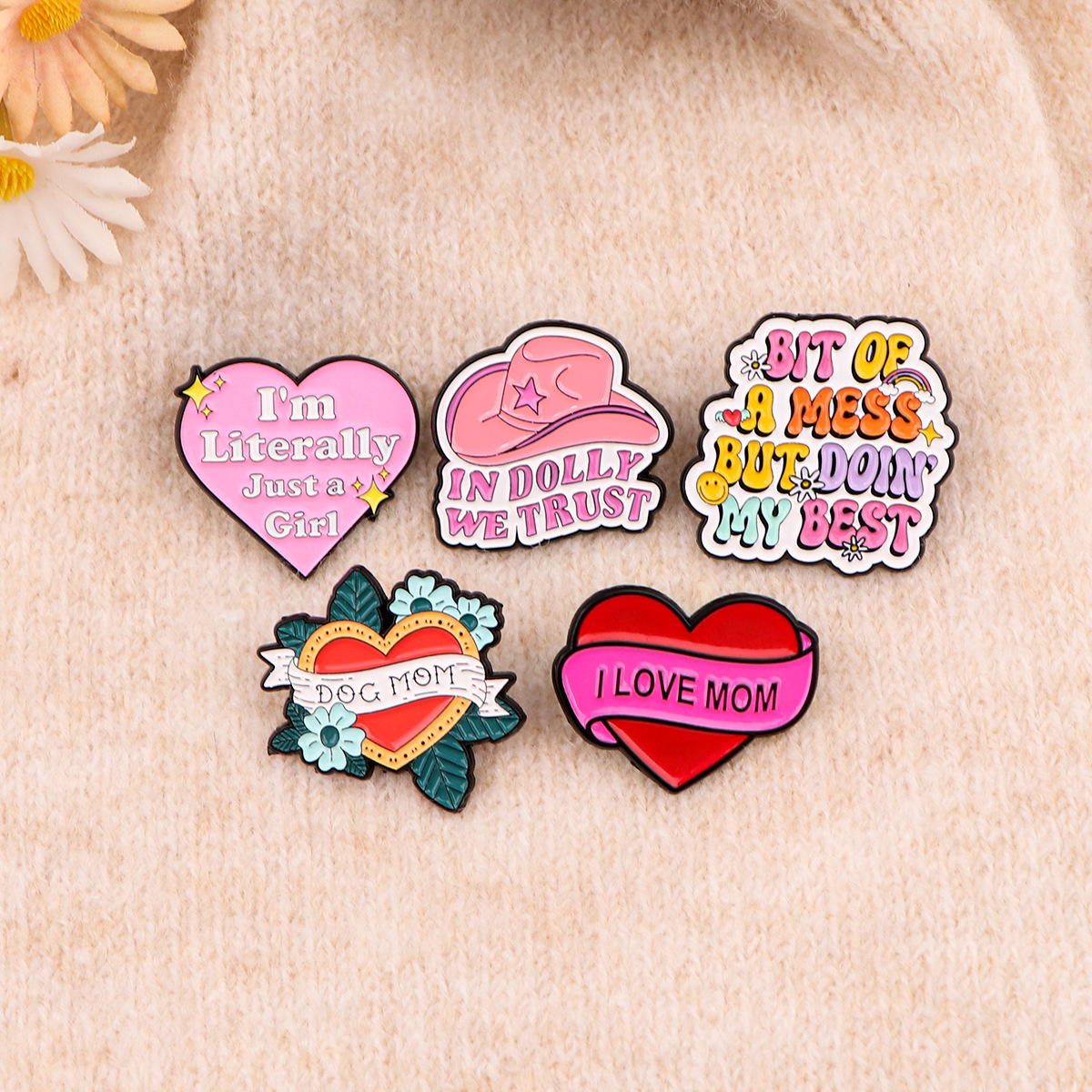 ピンクの愛の花の英語のアルファベットの語録帽子のブローチのバッジの服装のリュックサックの合金のクロスボーダーの装飾の現物
