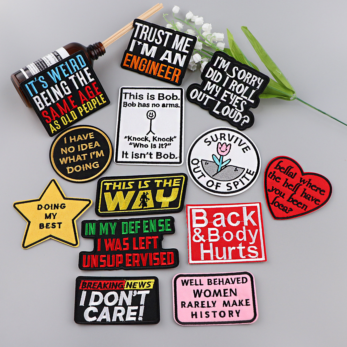 新作のアルファベットの語録漫画の文字刺繍布はパッチの服装の箱を貼ります。