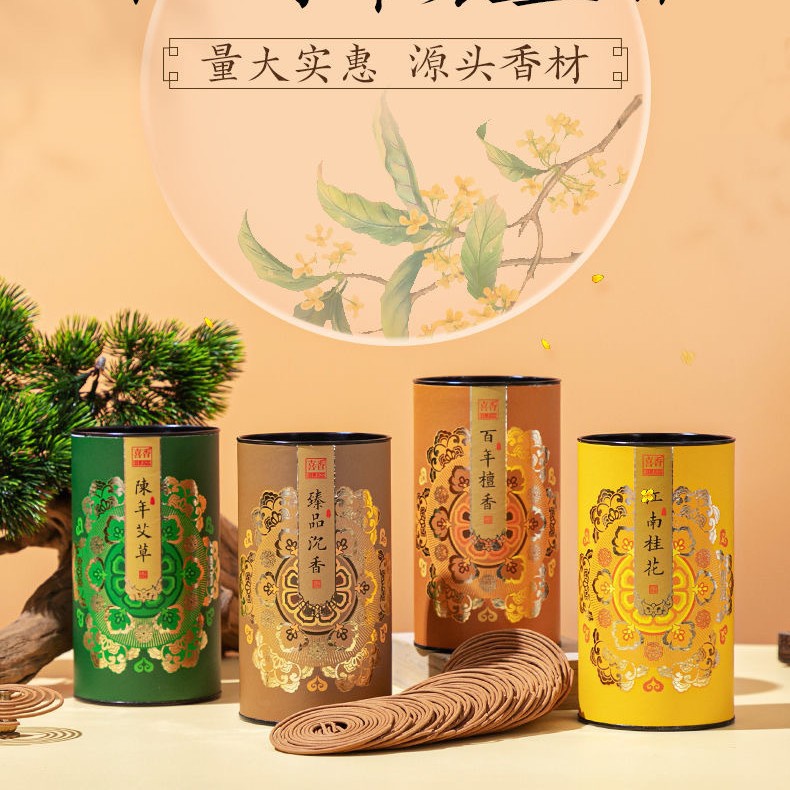舒心淡雅美真香桂花盤香天然老山檀香沈香龍よだれ香薫香家庭用室内香薫