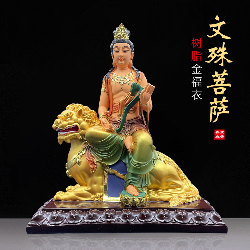 文殊普賢菩薩像樹脂ガラス鋼仏像家庭用招財寺神像文殊菩薩