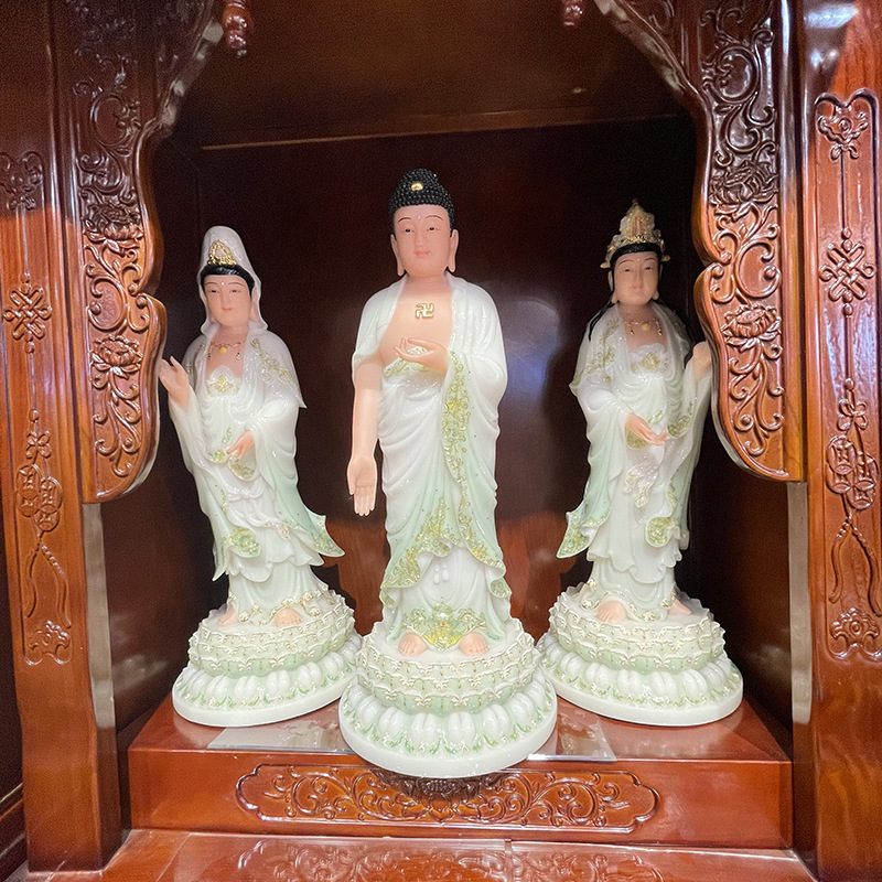 西洋三聖仏像阿弥陀仏大勢至観音菩薩駅神像樹脂供養置物家庭用