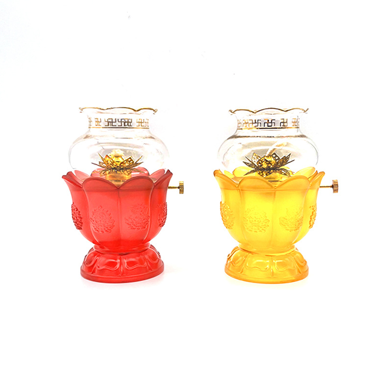 油灯の杯のメレンゲの灯の仏陀の前の長い明かりの仏堂は仏陀の家庭の明かりの杯の仏陀を供えて灯台の仏具を供えて高温になります。