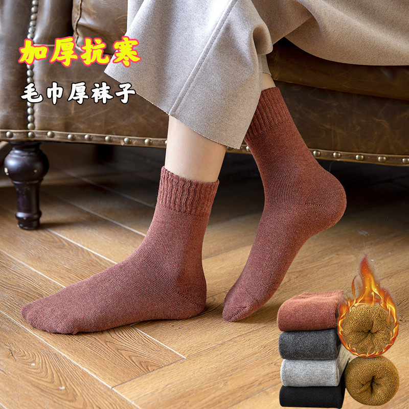 秋冬の中筒の靴下の女性の靴下の保温の純色の系の松の口の毛のリングの靴下とベルベットの厚い女性の靴下の雪のタオルの靴下