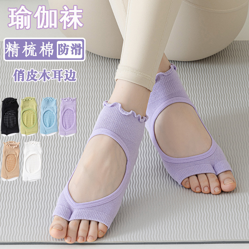 ヨガの靴下の子供の精練綿のソックスの女性の専門のプラティの運動の床板の滑り止めの骨がなくて、背中が指の靴下を分けます。