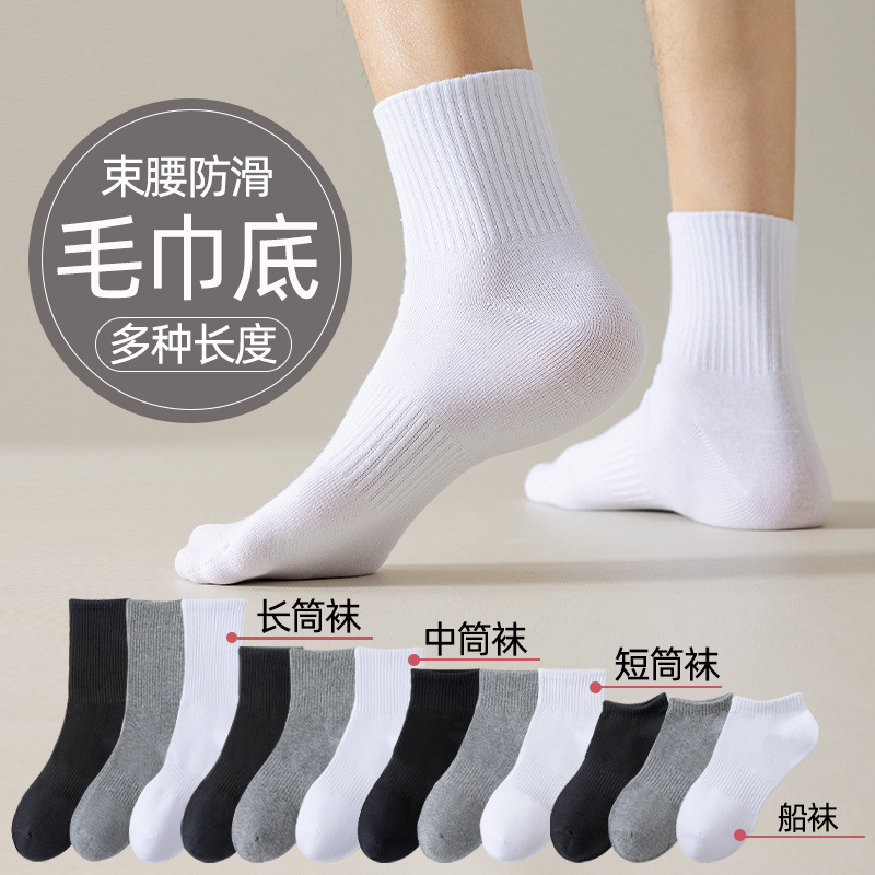 靴下の男性の四季のタイプのソックスの純色の骨のない船の靴下の防臭の中の筒の靴下の黒い白色の運動のレジャーのストッキング