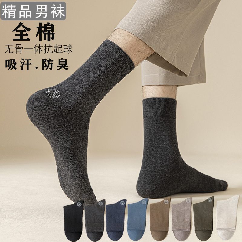 抗起球ビジネス靴下純綿純色中筒靴下男性防臭吸湿排汗レトロ高品質カジュアル男性靴下