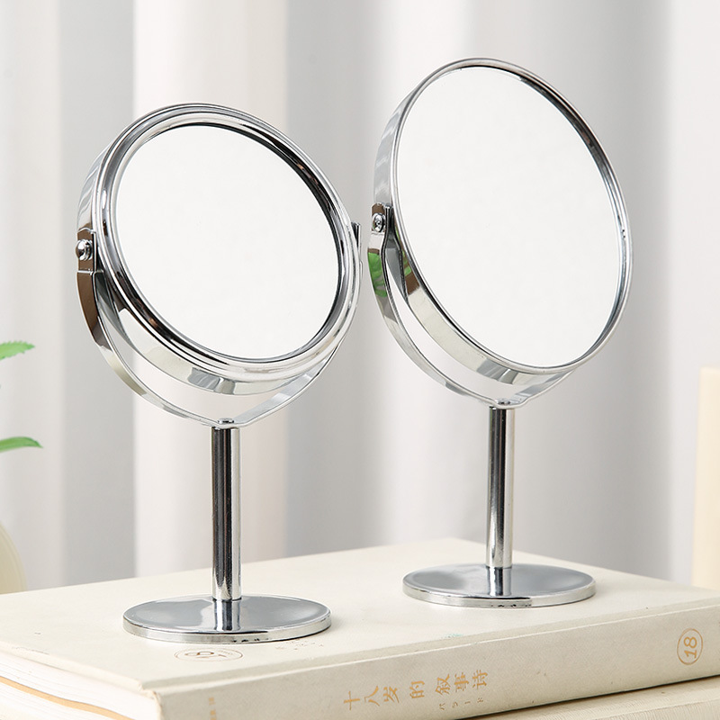 シルバー両面デスクトップ化粧鏡ステンレスオフィスデスクトップ回転鏡女子寮化粧鏡卸売り