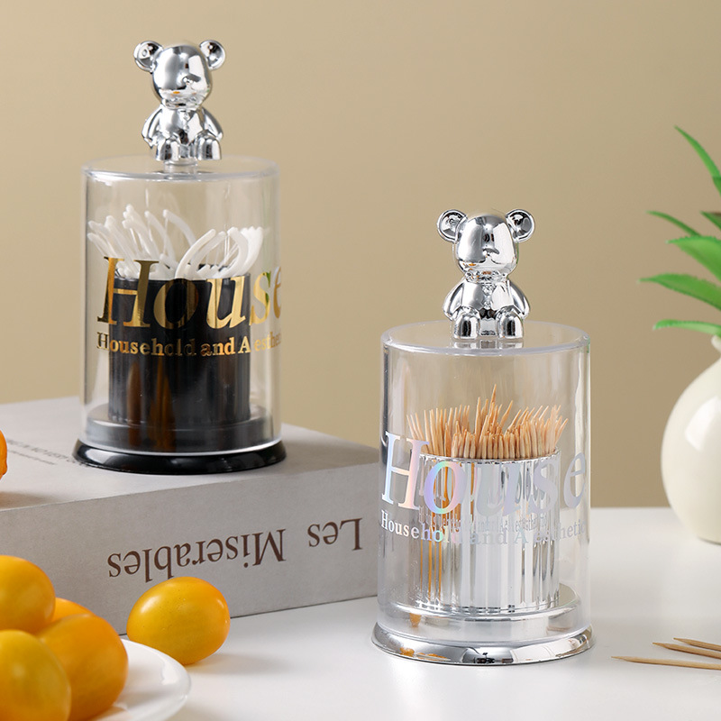 軽い贅沢なつまようじの収納筒家庭用創意的なつまようじの高級感の熊の綿棒の箱の軽い贅沢な風の高い顔の値の小さい箱