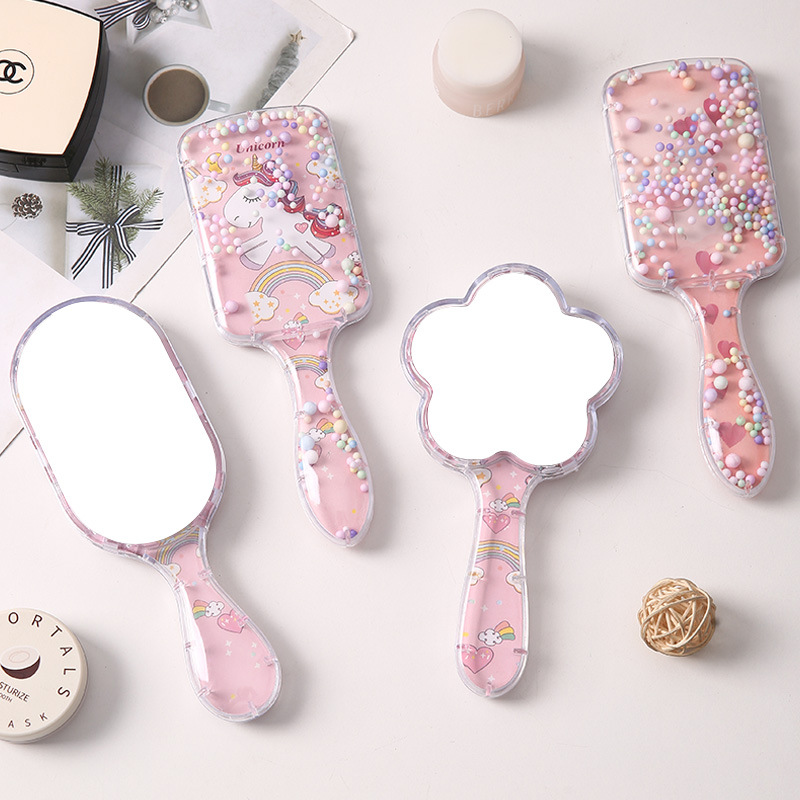 漫画ハンドヘルド化粧鏡ポータブルハンドルミラー屋外女の子コンパクト化粧鏡漫画ハンドルミラー