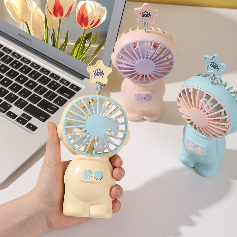 宇宙飛行士ナイトライト小型ファンクリエイティブギフトクール学生ハンドヘルドファン子供の漫画かわいい扇風機