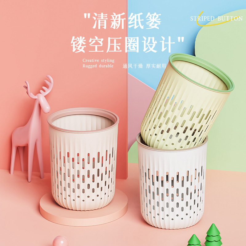 家庭用シンプルな蓋なし紙かご客間寝室プラスチック透かし彫りゴミ箱小清新衝突色清潔ゴミ捨て筒