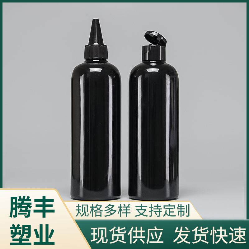 黒の尖口瓶の蓋を押してpe 400mlのプラスチックの瓶を押します。