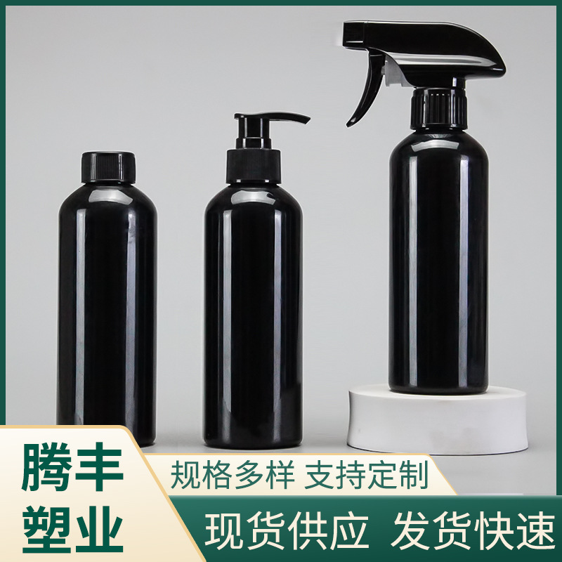卸売300ml黒い丸い肩ボトルpetプラスチック押えボトル手ボタン式スプレーガン自动车コーティングスプレー